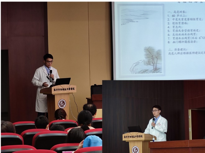 11点整,苏州大学附属第一医院肿瘤科朱春荣教授给我们带来了全国肿瘤防治宣传周科普讲座。朱主任从肿瘤对人体的危害、肿瘤的早期筛查、早期预防和早期治疗等方面给我们讲解了肿瘤防治的相关知识,并指出得了肿瘤经过科学系统的治疗也可以有很高的生活品质,很长的存活率,让在场听众受益匪浅。随后,苏州大学本科生临床五年1支部党员代表齐志翔同志给我们科普了老年人群中常见癌症及其早期筛查和预防,并给我们介绍了多学科诊疗模式(MDT)的起源与发展。