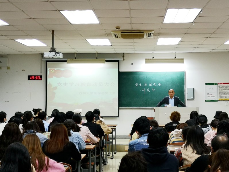 2021年是中国共产党成立一百周年,开展党史学习教育是党中央立足党的百年历史新起点、统筹中华民族伟大复兴战略全局和世界百年未有之大变局、为动员全党全国满怀信心投身全面建设社会主义现代化国家的伟大事业而作出的重大决策。为深入学习贯彻习近平总书记在党史学习教育动员大会上的重要讲话精神,进一步激发苏州大学医学部师生的爱党爱国热情,坚定共产主义理想信念,医学部分党校于4月19日晚组织本科生、研究生党员和入党积极分子召开党史学习教育动员大会,开展了“初心如磐看征程,百年华章颂党恩”庆祝中国共产党成立一百周年党史知识竞赛。
