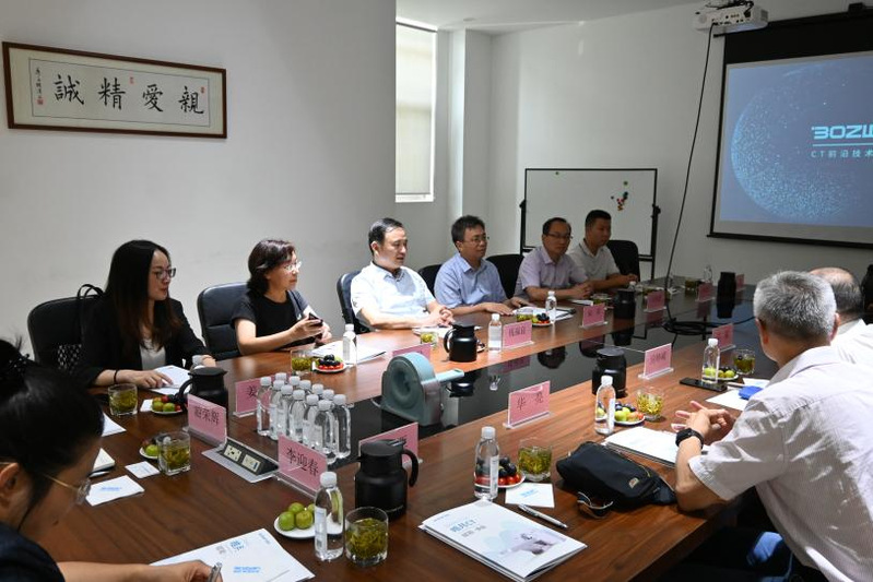 苏州波影医疗技术有限公司主营高端医疗影像设备,专注于以CT为核心的医学影像设备的研发、生产及销售,推出多场景应用下的移动CT整体解决方案,为全球市场提供专业影像产品和服务。在波影医疗技术有限公司讲解人员陪同下,钱福良一行参观了公司文化展厅,并与公司领导开展进一步合作进行了广泛深入的交流。