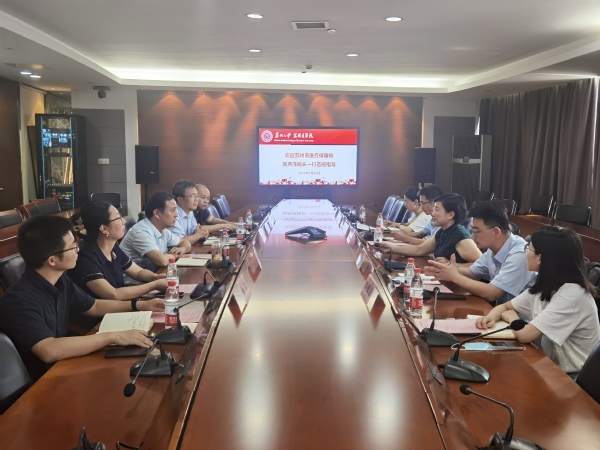 7月26日下午,苏州市医疗保障局主要领导来苏州医学院开展工作交流。出席交流会的有苏州市医疗保障局党组书记、局长施燕萍、副局长顾亚斌、办公室主任王志瑾、信息管理处王钰洁、机关党委俞淑婷;苏州医学院党工委书记钱福良、副院长宋军、合作交流办公室副主任何川、实验室管理办公室蒋芸、合作交流办公室徐卫。交流座谈会在学院820会议室举行,由学院副院长宋军主持。