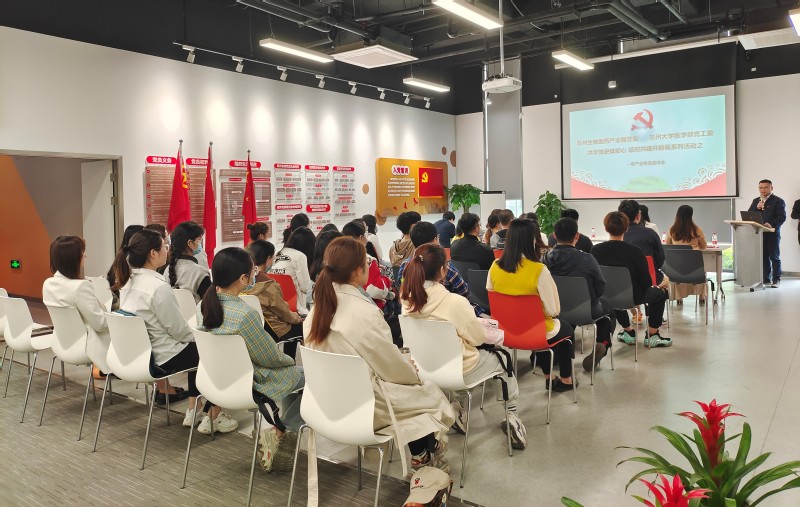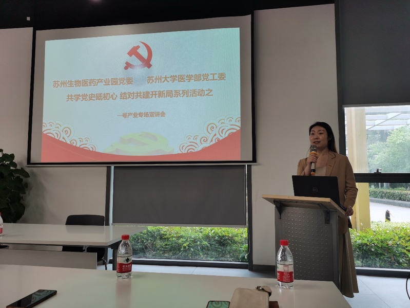 进一步深化党史学习教育,丰富党员学习形式,提升学习内涵,医学部党工委学生各党支部通过与高新医药生物企业党组织的共建,落实知行结合的原则。4月28日下午,医学部党工委生物科学类党支部、护理检验党支部和影像口腔党支部联合开展党日活动,作为“共学党史砥初心 结对共建开新局”系列活动的开端,组织学生党员和医学部应届毕业生同学来到苏州生物医药产业园。