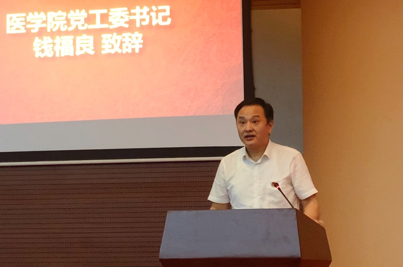 钱福良强调,今年是中国共产主义青年团成立100周年,也是党的二十大召开之年。在社会主义现代化建设的新征程中,医学生生逢其时、重任在肩。他希望各位同学能够积极扎根学院建设之中、扎根社会主义现代化建设的新征程中,树立牢固的爱院之情和责任奉献意识,以实际行动迎接党的二十大的胜利召开!