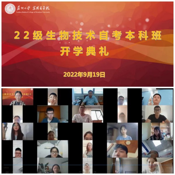 9月19日下午,2022级自考新生的线上开学典礼顺利举行。苏州医学院副院长宋军、苏州大学保卫处独墅湖校区治安科科长芈志坚、自考班班主任宋楠和2022级全体自考新生参加,活动由苏州医学院合作交流办副主任卢艳婷主持。