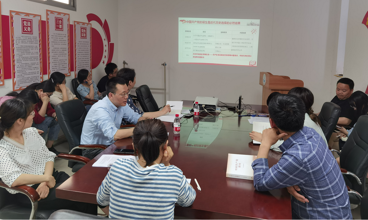 支部党员陈军副院长和支委委员卫林、龚方苑、李艳、朱雪梅和王洪民等老师按章节领学并做交流发言,带领支部党员详细学习《中国共产党简史》一书中关于中国共产党的创建和投身大革命的洪流、掀起土地革命的风暴、全民族抗日战争的中流砥柱等章节,用详实的历史、生动感人细节,叙述了中国共产党人以民族根本利益为重,不畏艰险牺牲,勇于斗争的精神品质,激发了全体党员强烈的爱国爱党情怀,会议由党支部书记卫林老师主持。