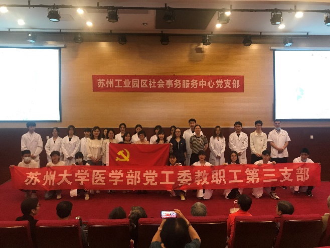 “凝心聚力学党史,砥砺前行强党性”,为迎接建党100周年,并持续深入开展党员教育和学习活动,医学部教工第三支部及医学部学工办联合苏州工业园区社会事务服务中心党支部、医学部临床八年2支部、苏州大学医学部团委实践部、苏大红十字会、苏州大学医学部学生团支部代表,以及苏州大学医学部紫卿阁剧社和五月天音乐社,于2021年5月9日在苏州工业园区久龄护理院开展“深情铸医梦,初心献终生”主题党员学习活动暨医学生感恩捐遗志愿者活动。