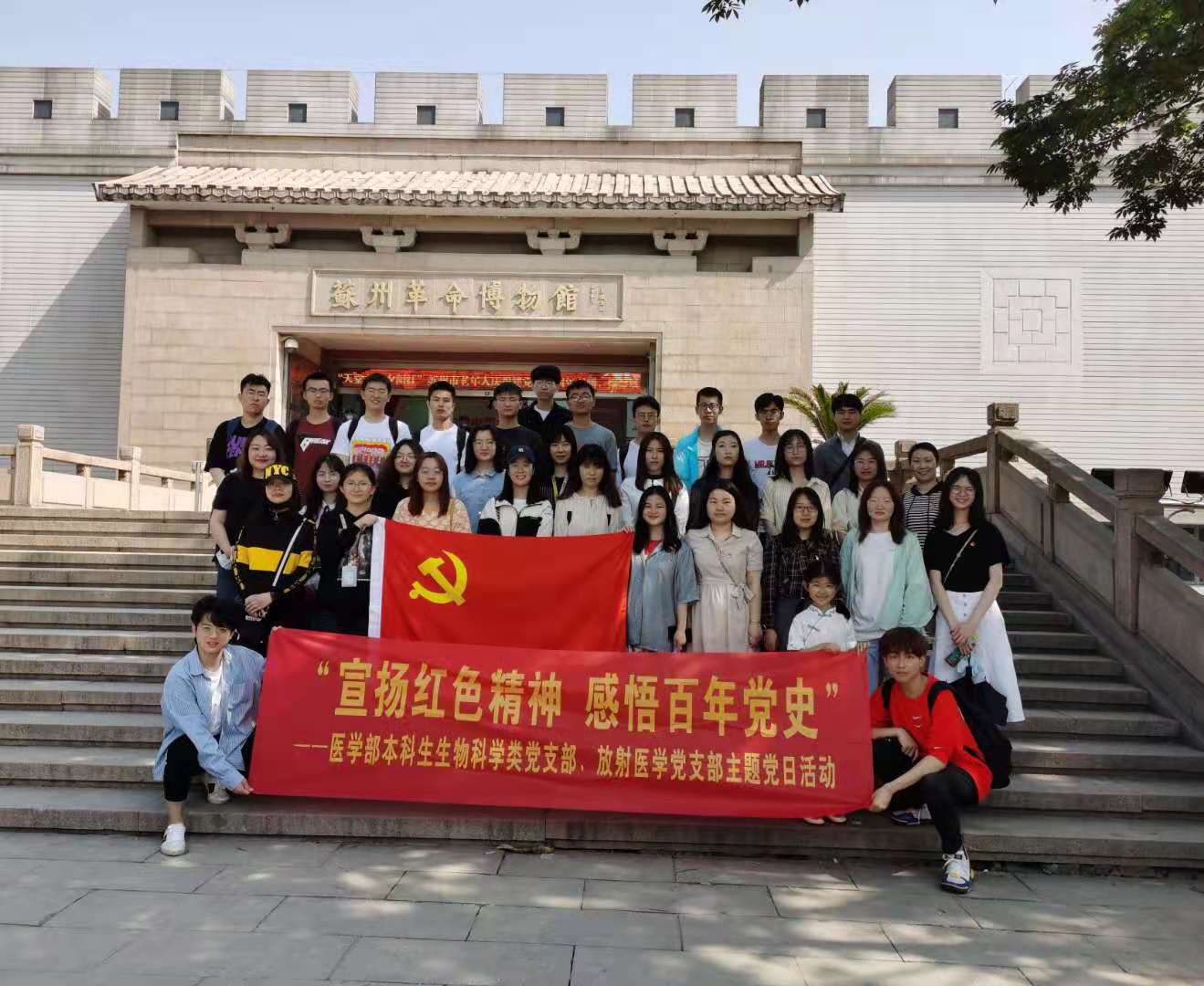 今年是建党100周年,回望“雄关漫道真如铁”的过去,瞭望“长风破浪会有时”的未来,党史学习教育是牢记初心使命、坚定理想信念、推进党的自我革命的必然要求。党的百年历史,就是践行初心使命的奋斗史,始终与人民心连心、同呼吸、共命运。为了在学习党史中牢记初心使命,在新征程中百折不挠,2021年5月9日,本科生生物科学类党支部与放射医学党支部联合举办了“宣扬红色精神 感悟百年党史”主题党日活动。