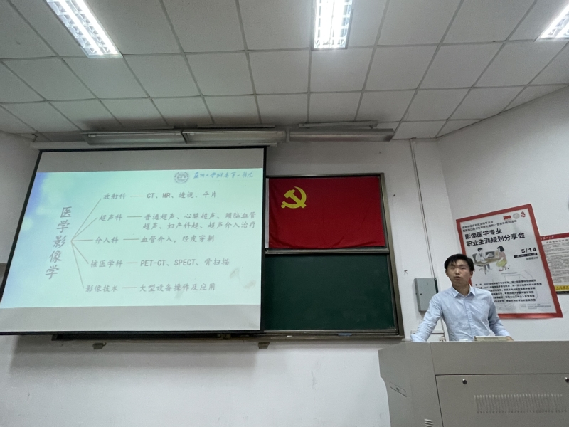 5月14日,医学部党工委影像口腔党支部在苏州大学东教楼109、106教室分别举办影像医学专业职业生涯规划分享会和口腔医学专业职业生涯规划分享会,会议由医学部学工办副主任、职业生涯规划课任课老师孙静老师主持。该活动旨在让影像和口腔专业的同学对自己未来的职业规划和求学道路有一个更清晰、更深层次的认识,邀请成功校友和升学毕业生分享自己的经历与经验,帮助同学们对未来有一个更明确完整的规划。
