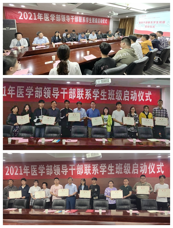 2021年5月19日下午16:00,医学部领导干部联系学生班级启动仪式于炳麟图书馆825会议室成功举办。医学部党工委书记邹学海、医学部常务副主任徐广银等医学部领导班子成员,2019级、2020级辅导员以及领导定点联系班级班长参加了本次启动仪式,仪式由医学部学工办主任温洪波老师主持。领导干部联系班级制度的初衷,是建立学部领导与学生直接联系的渠道,使学部领导老师更加贴近学生实际,了解当代医学生的思想动态,以赤诚之心去关怀学生的思想、学习和生活。