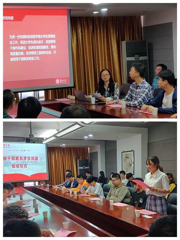医学部党工委书记邹学海老师认为建立领导干部联系班级制度,是引导学生全面发展,健康成才,促进良好学风的需要。同时,做好领导干部联系班级工作,对于增强学部领导与学生班级的沟通与交流,转变工作作风,增强服务意识,提高管理水平等都具有重要的现实意义。希望本次启动仪式之后,双方保持积极的互动,开创师生共进的新风。