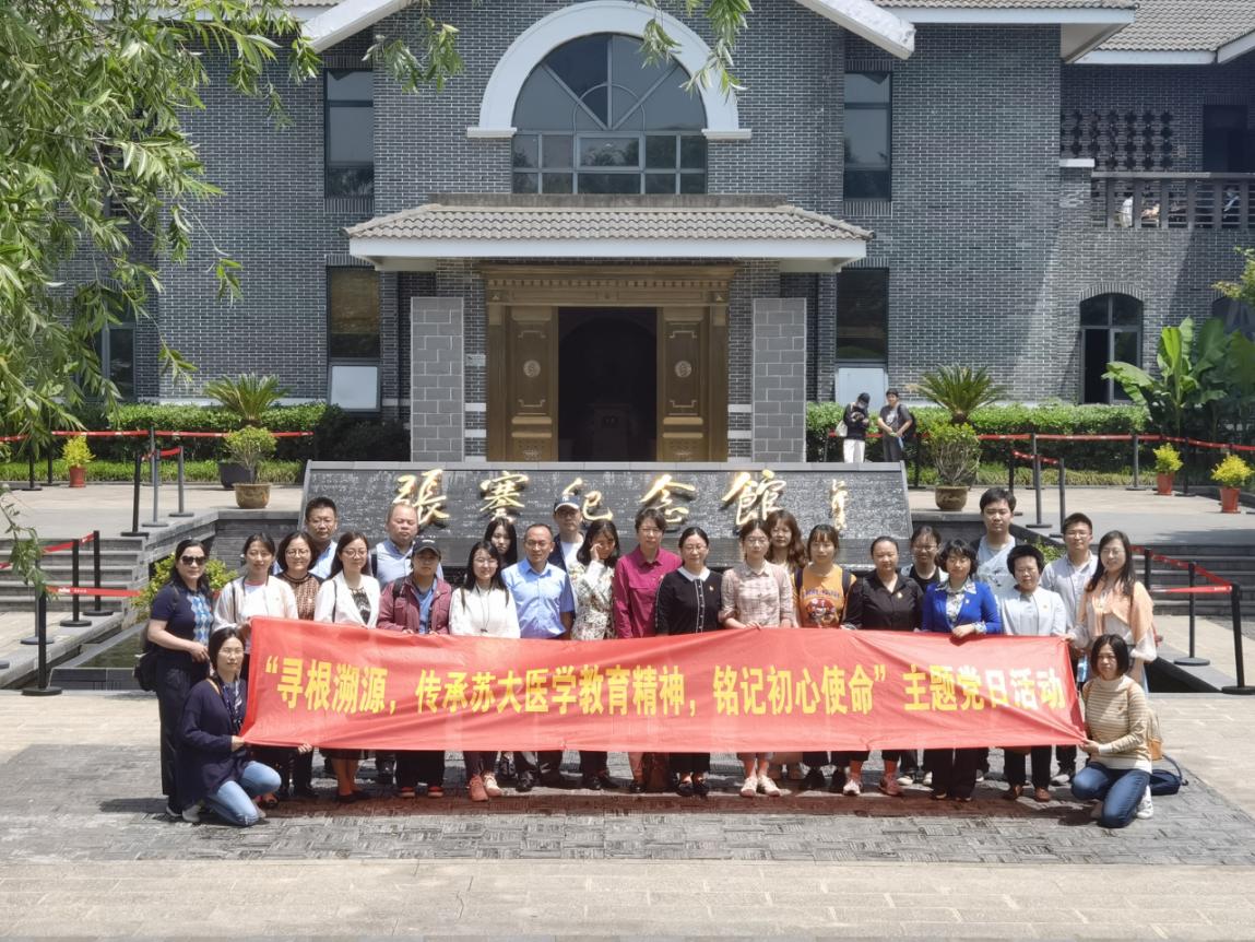 为热烈庆祝中国共产党成立100周年,献礼苏大医学教育110周年,苏州大学医学部党工委行政党支部于5月21日组织“寻根溯源,传承苏大医学教育精神,铭记初心使命”主题党日活动。教工第一党支部、第二党支部党员以及本科生、研究生党员代表共26人赴南通市海门区张謇纪念馆参观学习。追寻苏大医学创始人张謇先生的足迹,聆听一代爱国实业家、教育家、慈善家的伟大事迹,铭记“祈通中西以宏慈善”初心,牢记医学教育使命和责任。