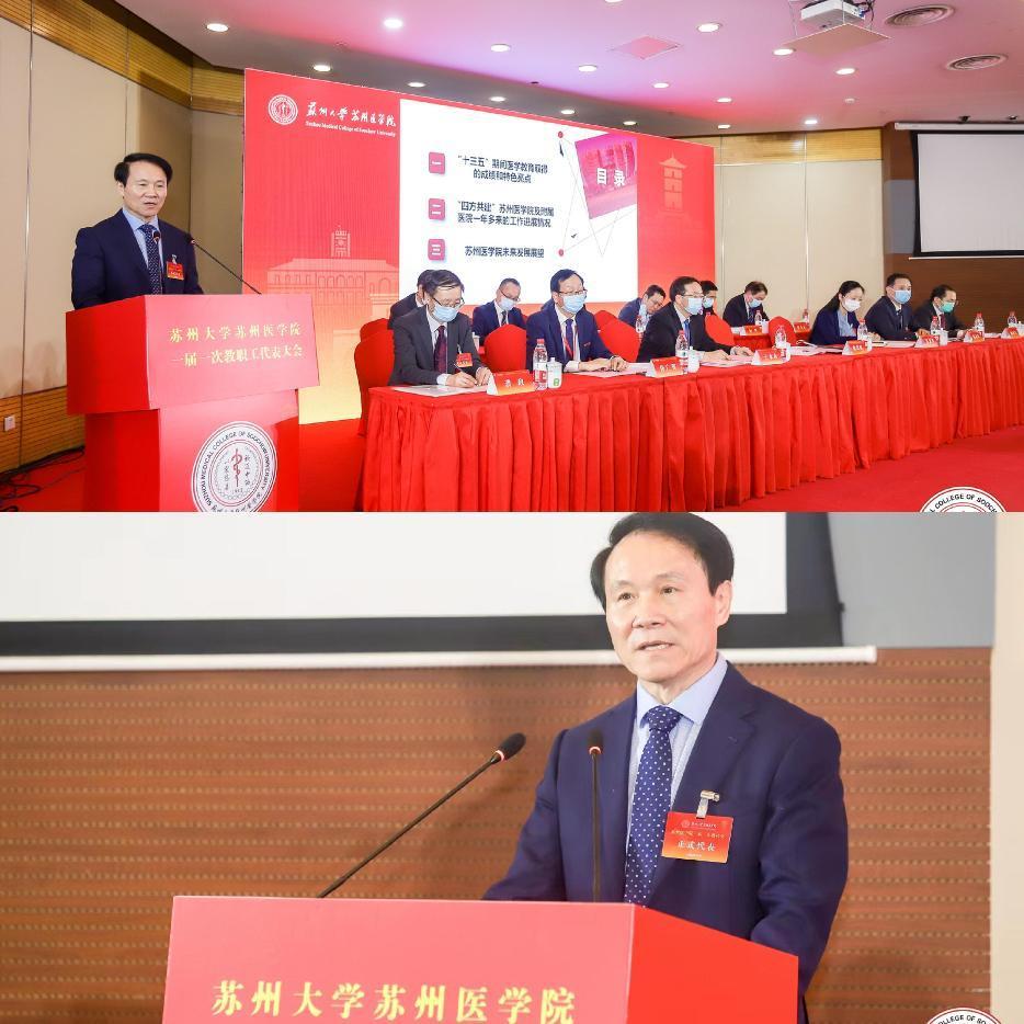 大会听取了詹启敏院长所作的题为《踔厉奋发、勇毅前行,为创建国内一流、国际知名的医学院而努力奋斗》医学院工作报告。报告总结了“十三五”期间医学教育取得的成绩和亮点,总结了四方共建医学院及附属医院一年多来的工作进展情况,对医学院未来发展进行了展望。詹院士提到医学院改革契合健康中国战略,也是深化医药卫生体制改革和教育综合改革的必然举措,符合名城名校名医发展需求,符合广大医学学子和校友的意愿;应当坚持创新发展、内涵发展、特色发展、融合发展、借力发展,构建区域医学发展共同体;将继续加强顶层建设,形成推进合力,激发发展活力,落实学校《关于深化苏州医学院体制机制改革的若干意见》,完善改革方案,加速人才集聚,提升人才培养质量与科研水平,实现医学教育高质量发展。