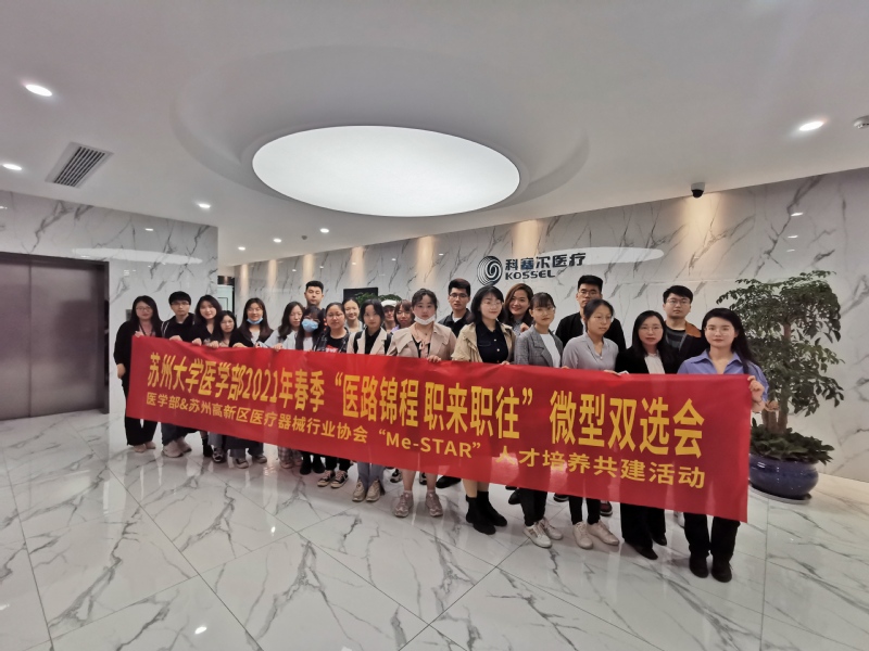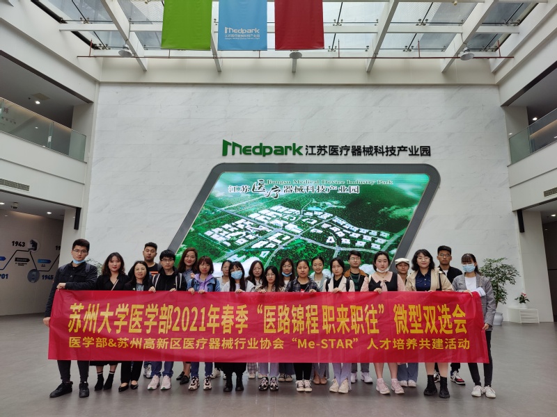 2021年5月20日,在江苏医疗器械科技产业园,苏州大学医学部联合高新区医疗器械行业协会、国仟医疗举办的2021年春季“医路锦程职来职往”微型双选会顺利举办。
