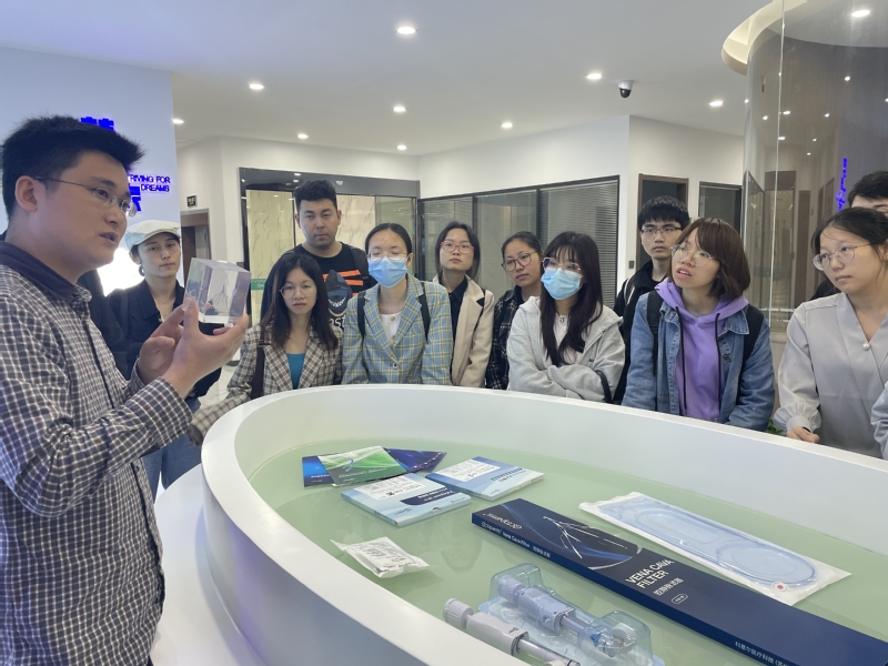 医学部的毕业生们先来到了位于医疗器械科技产业园1号楼的展厅,讲解人员先给大家简短介绍了产业园的发展历程,然后对展厅的医疗器械展品作了简单的解说,让大家了解它们是如何在临床或者患者上发挥作用,如何促进人类健康事业,以及它们代表的先进技术反映了科技园的无限发展潜力。接下来大家分别参观了心擎医疗和科塞尔医疗2家优质用人单位代表,直观感受他们的工作环境和公司文化。在参观过程中,同学们接触到先进的医疗器械,与用人单位科研人员进行深度交流,将学习到的理论与实践相结合,拓宽了眼界,对医疗器械行业有了更深刻的认识。