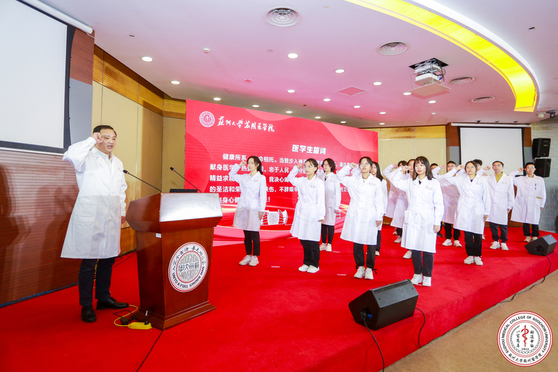 金秋十月,苏州大学苏州医学院又迎来了一批新学子,今年是苏州大学医学教育110周年,2500余名2022级本科生和研究生新生通过线上线下相结合的特殊方式,齐聚一堂,2022级新生穿上象征身份与职业、赋予责任与使命、承载理想与信念的白袍,在医学院党工委书记钱福良的领誓下,郑重许下医学生誓言,在这神圣的医学生誓词宣誓仪式教育中,他们完成了精神洗礼和角色转变,向医学生涯迈出了坚实的第一步。