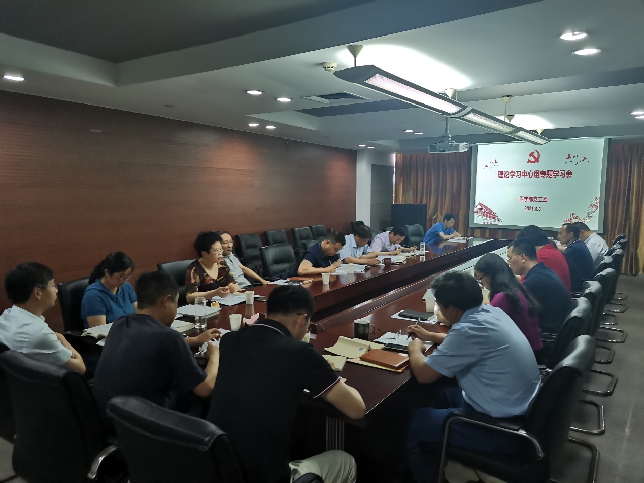 6月8日上午,医学部党工委理论学习中心组举行集中学习会,按照党史学习教育“原原本本学”的要求,认真学习了习近平《论中国共产党历史》,理论学习中心组全体成员参加学习,会议由党工委书记邹学海主持。学校党史学习教育第二巡回指导组副组长、工会副主席顾志勇到会指导。
