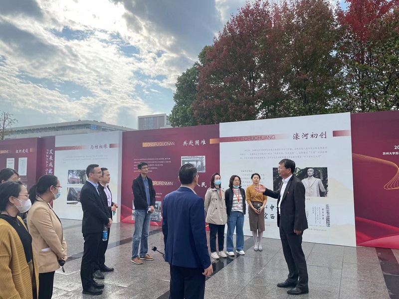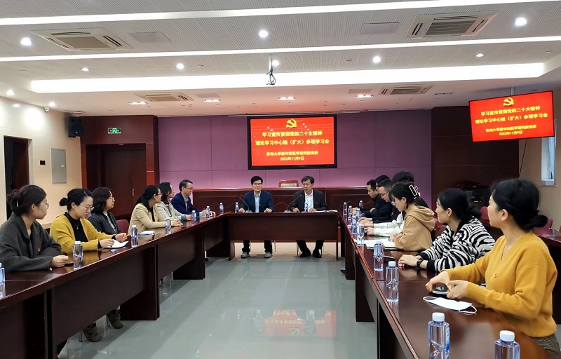 11月9日下午,唐仲英医学研究院党委理论学习中心组(扩大)举行学习宣传贯彻党的二十大精神参观学习会。研究院党委理论学习中心组成员、党支部书记及师生党员代表赴苏州革命博物馆参观学习“习近平新时代中国特色社会主义思想指引下的苏州实践主题展”,主题展分为伟大思想引领伟大航程、建设展现“强富美高”新图景的社会主义现代化强市、奋进新征程建功新时代三个部分,通过文字以及300余张图片、50余部视频短片、150余件各类实物,生动展现了苏州持续深入学习贯彻习近平新时代中国特色社会主义思想的具体实践和发展成果。
