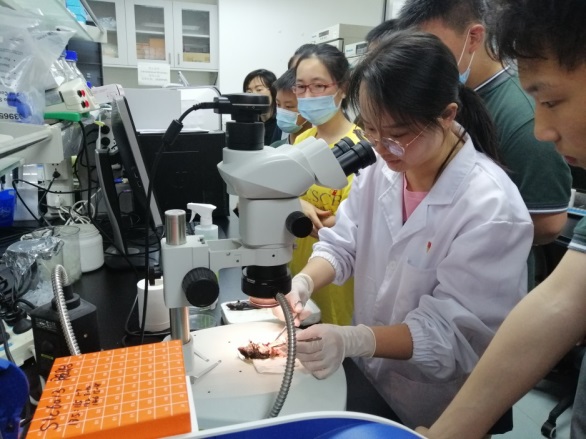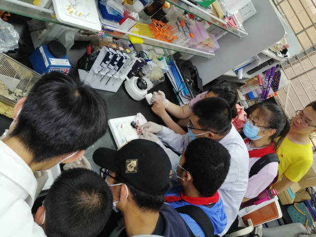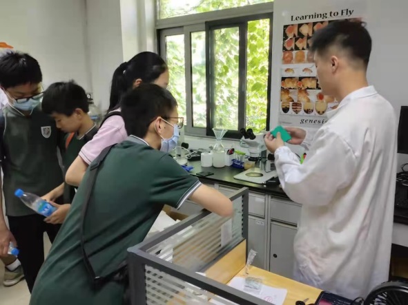 活动分为科普讲座、生物学小实验、以及参观等环节。在科普讲座环节中,中心周飞副研究员为学生们带来了题为“身体的时钟”的讲座,介绍了生物钟的发现,产生调控机制,生理病理功能,时型的分类与判断等等,使学生们对生命科学和生物节律有了初步的认识。