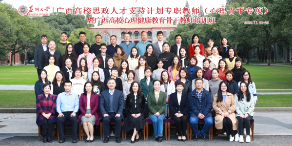 11月21日至23日,广西高校思政人才支持计划专职教师(心理骨干专项)暨广西高校心理健康教育骨干教师培训班在苏州成功举办。本次培训班由广西壮族自治区教育厅主办,右江民族医学院和苏州大学苏州医学院联合承办。