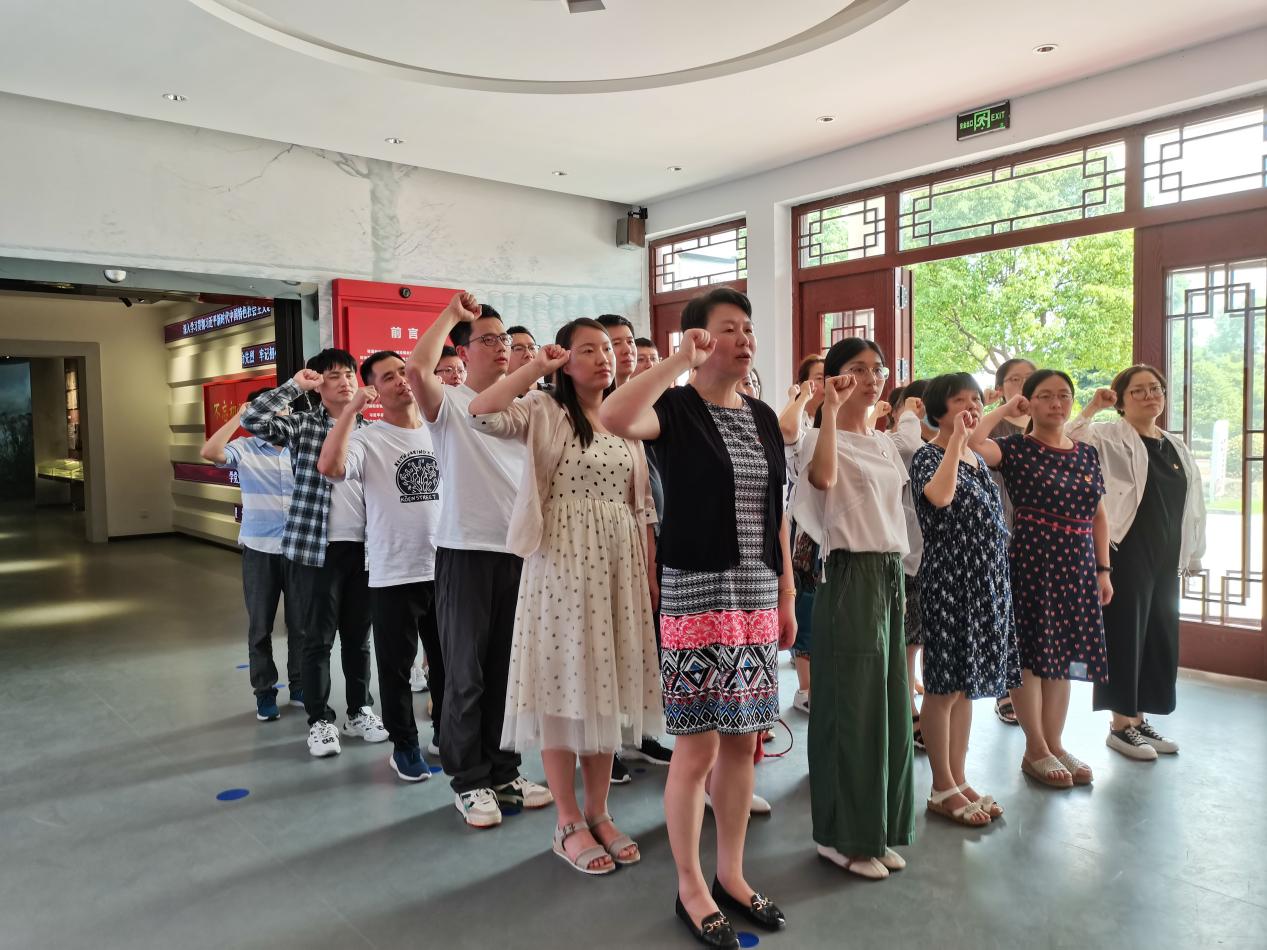 最后一站,党员同志们来到太仓最北端的杨漕村,该地于1940年诞生了太仓区第一个党支部——中共杨漕乡支部。在太仓第一个党支部纪念馆,医学部纪工委书记李伟文带领全体党员重温入党誓词,铭记初心使命。