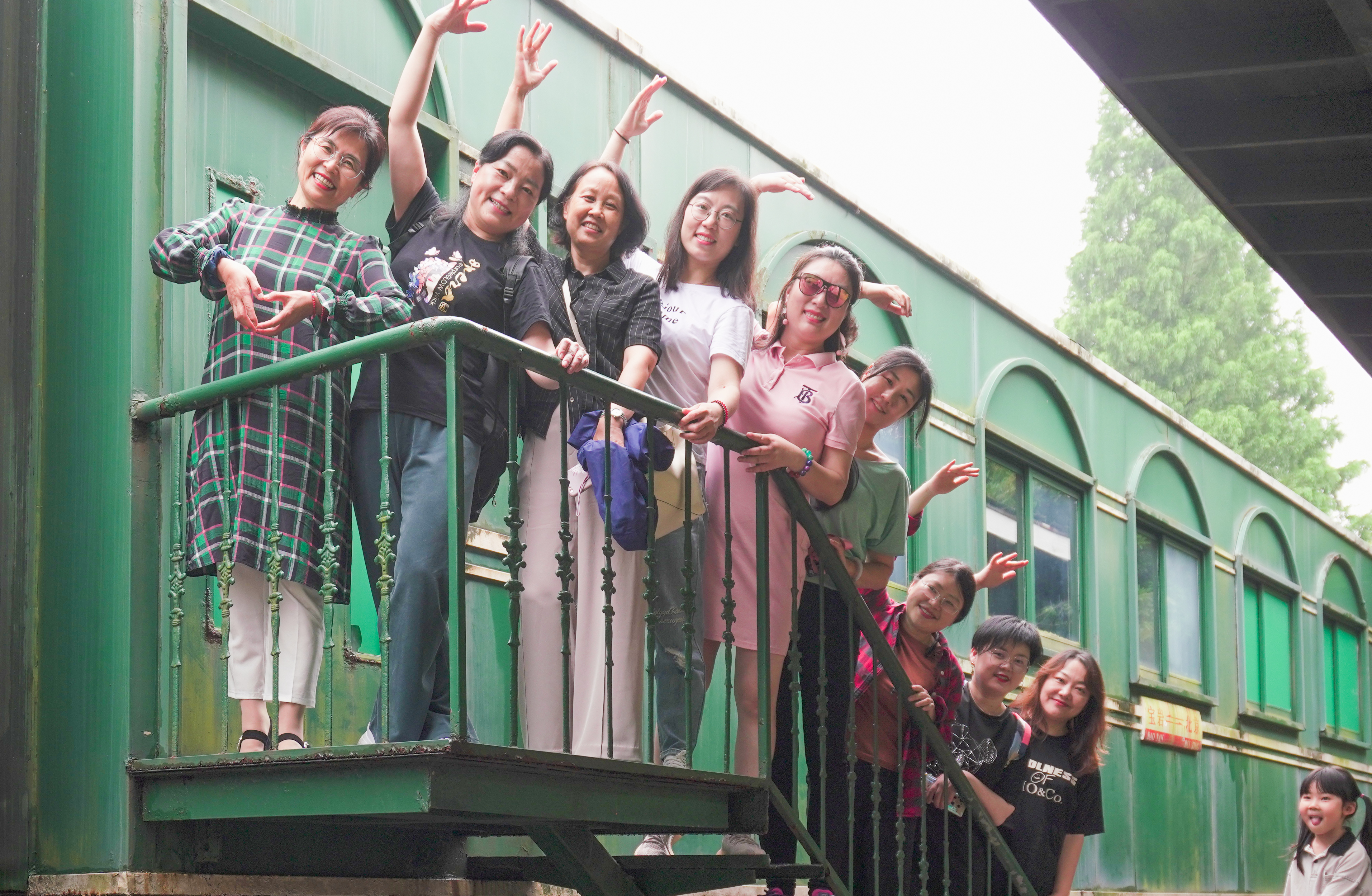 第二站位于游客中心后方,是一辆已经退役的绿皮火车,上面写着“宝岩→北京”,透过火车我们仿佛能望见过去那段峥嵘岁月,以及它承载着的人们对远方亲人的浓厚思念,师生们纷纷走上火车的楼梯合影留念。