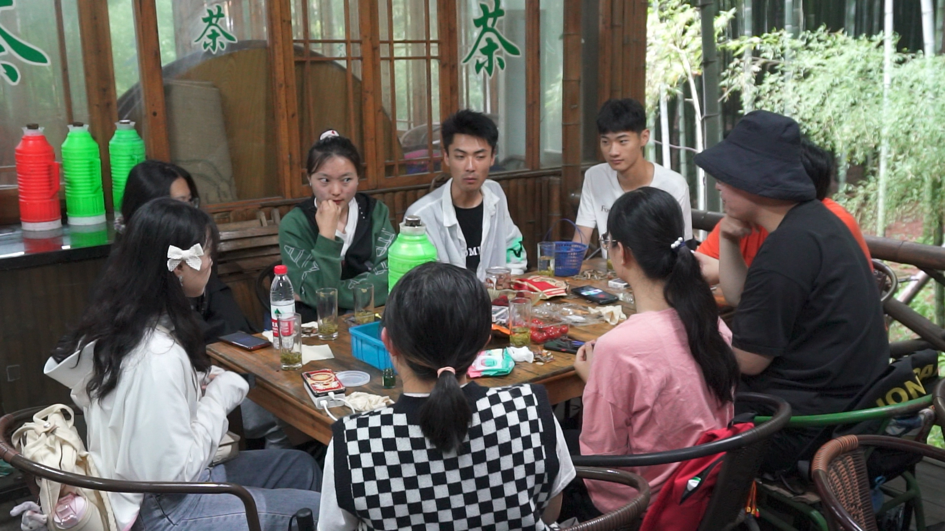 中午工作餐后,师生们前往竹林处的小屋稍作休憩,茶余饭后,师生们再次开启了热烈的讨论,畅谈各自的家乡习俗,理想性格,对党,对国家的感激之情以及未来将要何去何从,师生们在此刻放下年龄与身份,沉浸于观点的交流与碰撞,师生情谊进一步加深,随着时间的流逝,于下午四点,师生收拾东西,乘车返回学校。