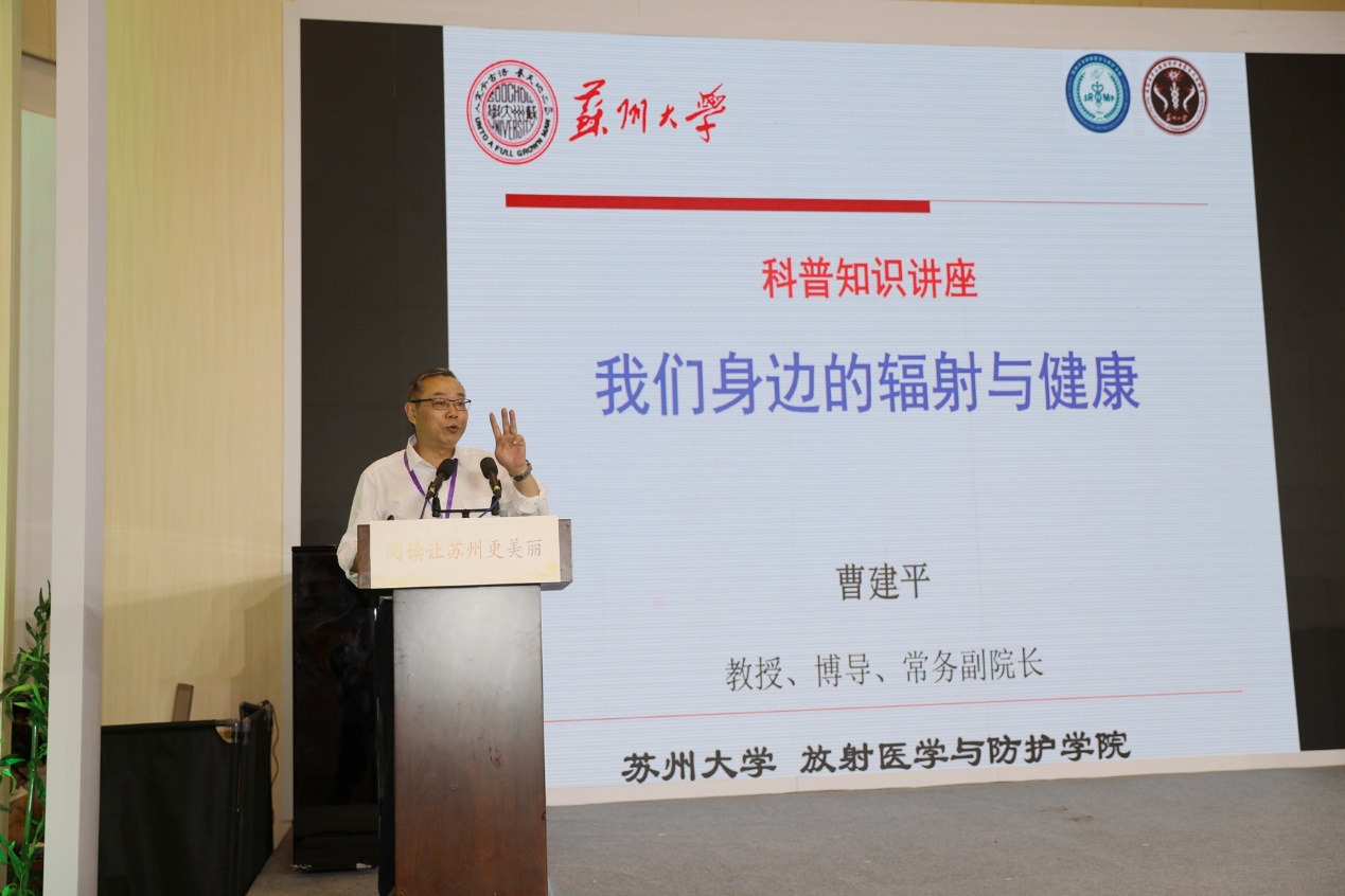 活动上,苏州大学放射医学与辐射防护国家重点实验室曹建平教授和苏州大学出版社盛惠良社长共同为“辐射与健康科普丛书”首发揭幕。