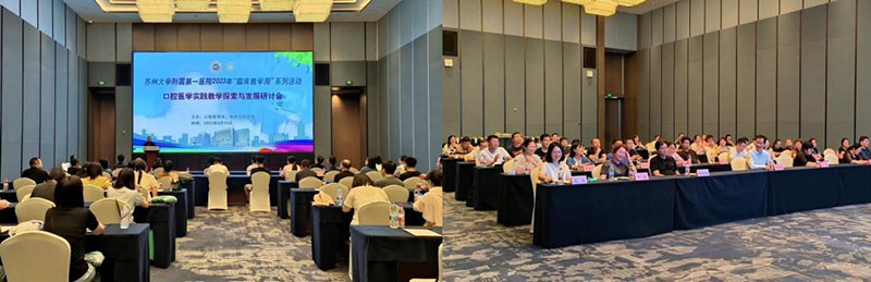 2023年8月19日,恰逢中国医师节,由苏州大学苏州医学院口腔医学系主办、苏州口腔医院承办的 “建设一流专业 打造一流课程 培养一流人才”口腔医学实践教学探索与发展研讨会顺利召开。来自4家附属医院及基础医学院的近50位教师代表齐聚一堂,共同商讨口腔医学系的建设发展。本次会议特邀苏州医学院副院长钟慧、第一临床医学院教学办公室主任李珉、副主任邓阳莅临指导。